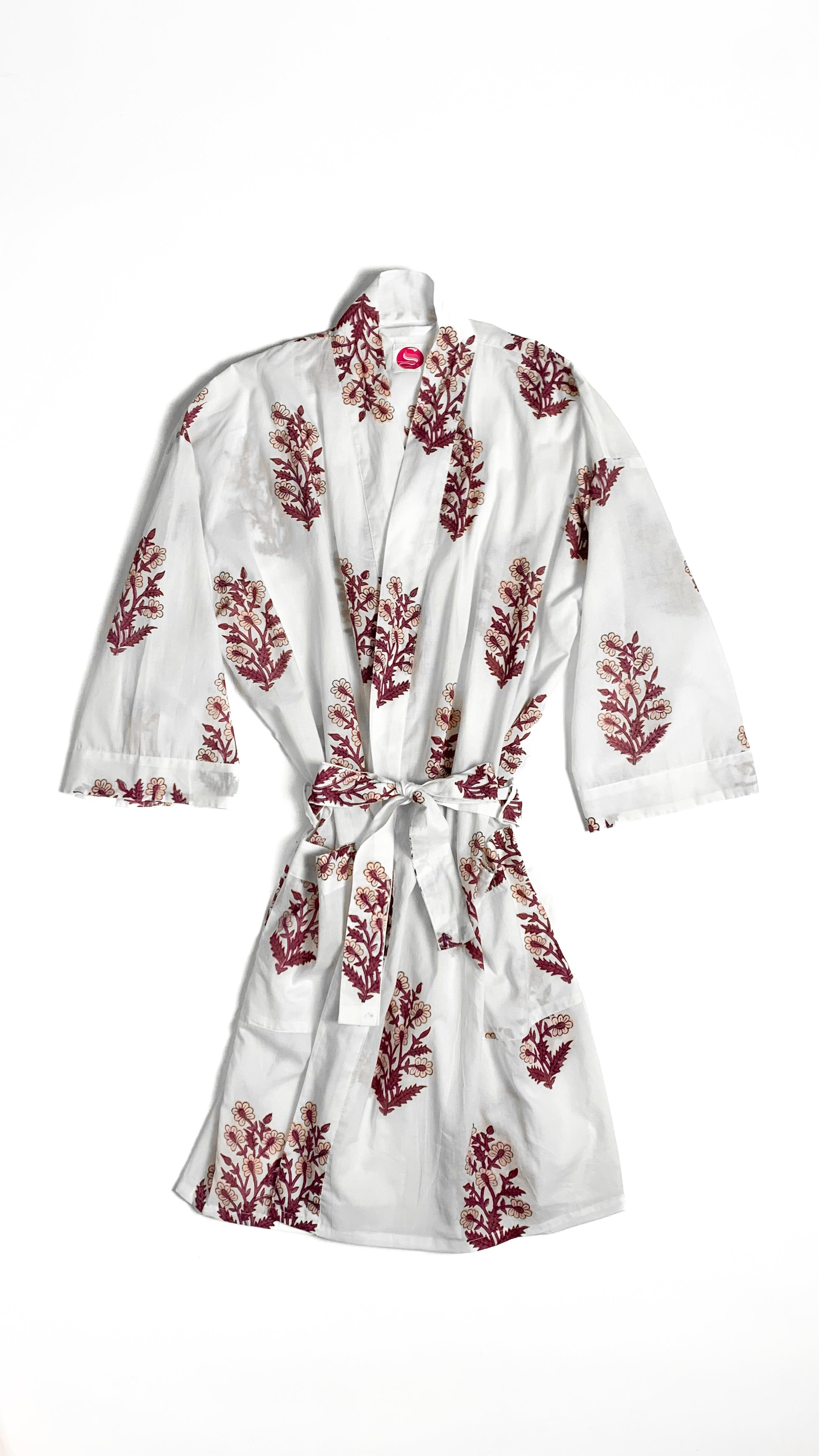 Perfect for your bridal party, these elegant white cotton robes with a floral pattern are ideal for getting ready on your special day. Whether you're having your hair and makeup done or sharing a morning toast, these robes provide the perfect blend of comfort and style. With front pockets for convenience and a detachable tie for easy wear, your bridesmaids will feel pampered and picture-ready.